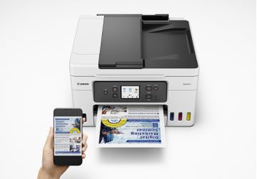 The Canon MAXIFY GX4070 is a high-performance, business-class colour refillable ink tank printer designed for small offices that demand speed, reliability, and ultra-low printing cost. With 3-way paper feeding, 350-sheet capacity, 35-sheet ADF, Auto 2-Sided Printing, and full network connectivity, this 4-in-1 printer (Print/Copy/Scan/Fax) delivers outstanding productivity.Its pigment-based inks offer highlighter-resistant, water-resistant prints, ensuring professional-quality documents every time. The space-saving design, intuitive 2.7" colour touchscreen, and easy-replace maintenance cartridge make the GX4070 a powerful and user-friendly choice for growing businesses.