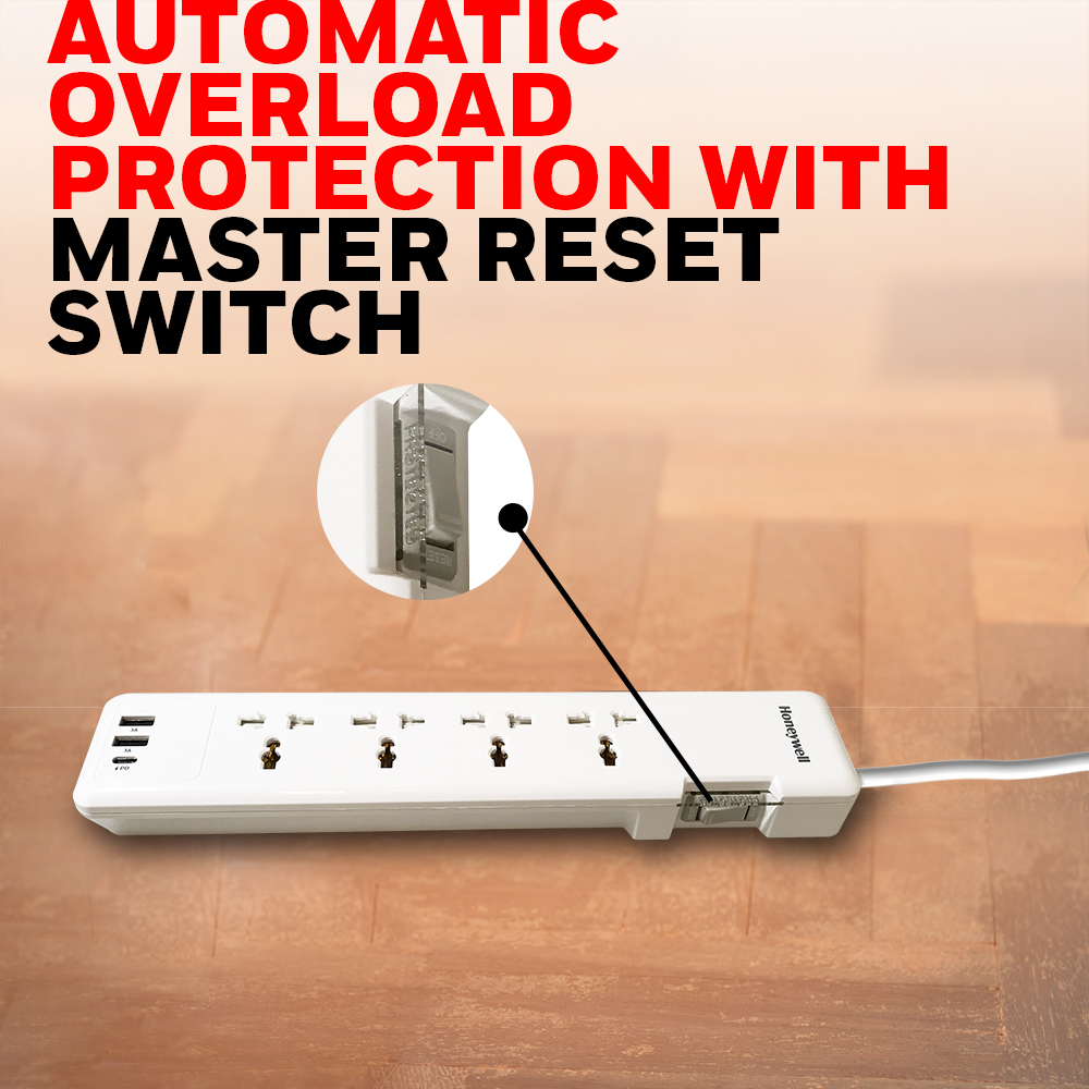 The Honeywell 4 Out Surge Protector PD20W with 2 USB Ports is the ultimate solution for protecting and charging your electronic devices. With a robust set of safety features, universal socket compatibility, and high-quality construction, this surge protector ensures both the safety and efficiency of your devices.
