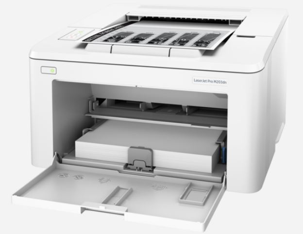 HP LaserJet Pro M203dn Printer; HP Black LaserJet Toner Cartridge ~1000 pages; HP LaserJet Imaging Drum ~23,000 pages; HIG, Setup Poster, Support flyer; Warranty Guide, flyer, Errata in some countries; Printer documentation and software on CD-ROM; Software drivers and documentation on CD-ROMs; CDs containing software and electronic documentation; Power cord; USB cable