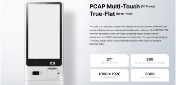 - Sleek and modern design with 27" and 21.5" TFT LCD touchscreens.