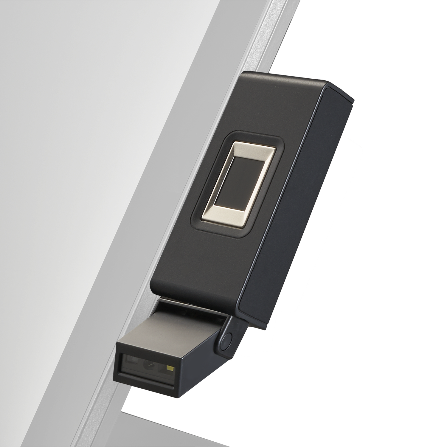 - Integrated 2D barcode scanner and fingerprint sensor