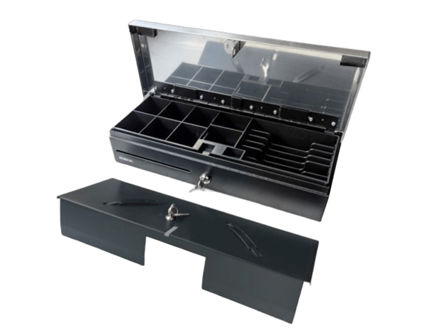 The Rugtek CR-170B is a compact and efficient POS cash drawer designed for space-constrained retail and billing environments. Built with robust steel construction, this drawer ensures durability while maintaining a slim footprint for seamless counter integration. It supports organized cash handling with multiple bill and coin compartments, along with a front media slot for cheques, receipts, and vouchers. The key lock mechanism enhances security, while RJ11/RJ12 receipt printer interface support allows smooth integration with POS printers. With high durability rated for 1,000,000 operations, the Rugtek CR-170B is a reliable cash management solution for POS machines and ECR systems.