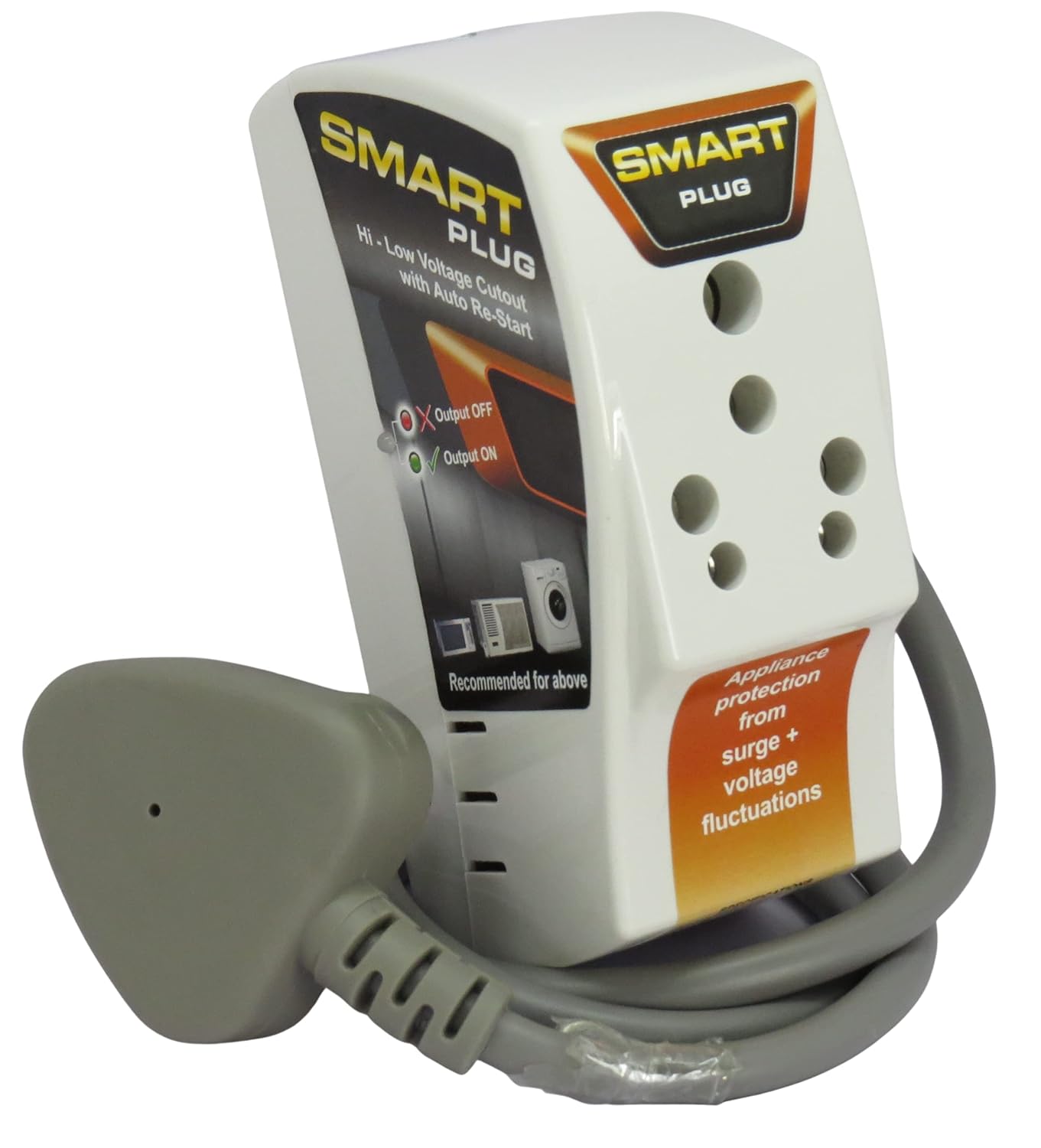 Intelligent High/Low Voltage Cutoff: Trips power automatically below 170V or above 270V to protect the appliance.