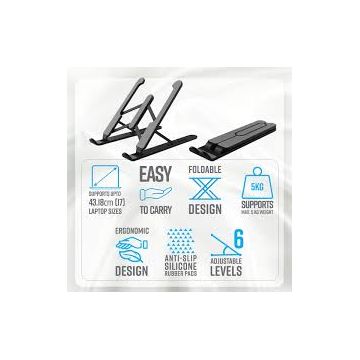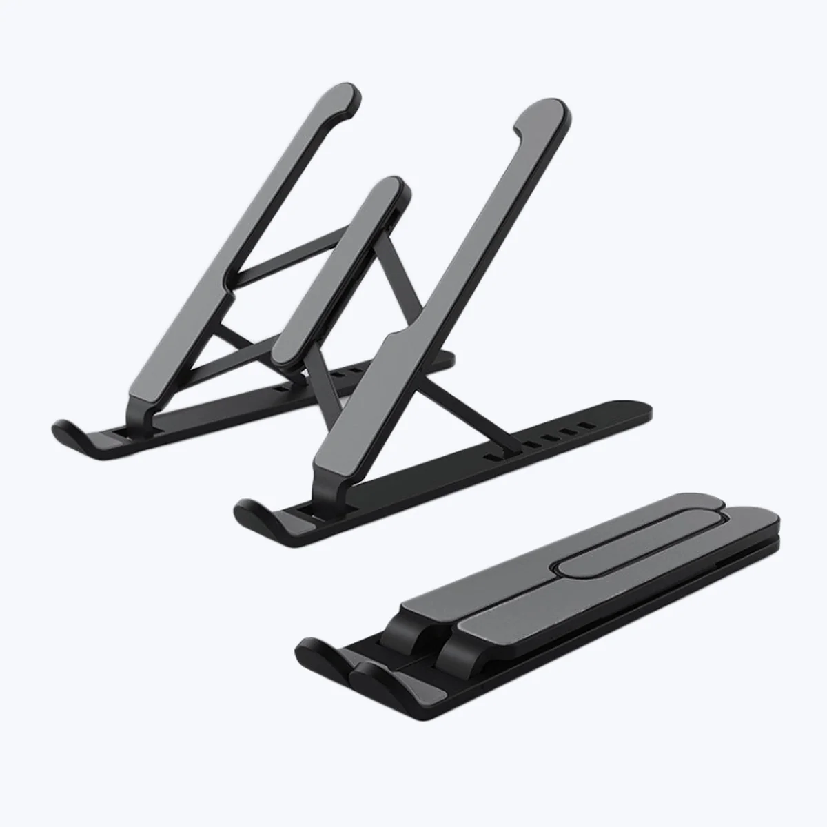 This foldable ergonomic laptop stand is designed for comfort, portability and stability. With 6 adjustable height levels, it helps you maintain a healthy posture while working. The anti-slip silicone pads keep your device securely in place, and the durable structure supports laptops up to 17 inches and 5 kg. Compact and easy to carry, it’s ideal for home, office, travel or study use.